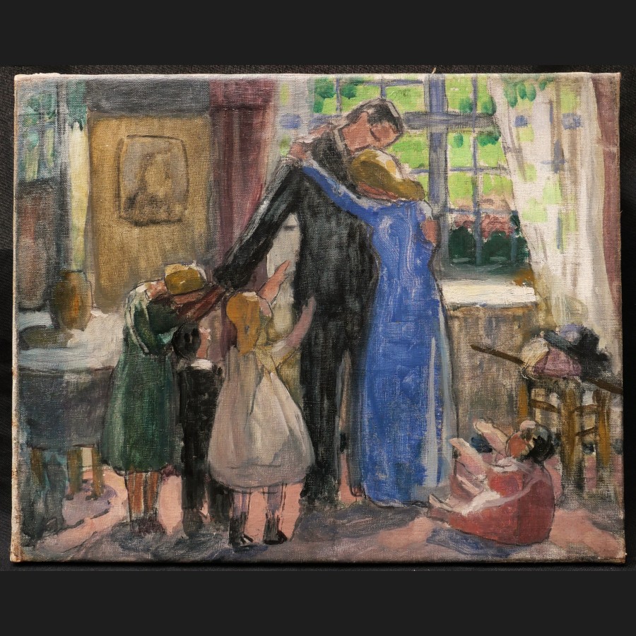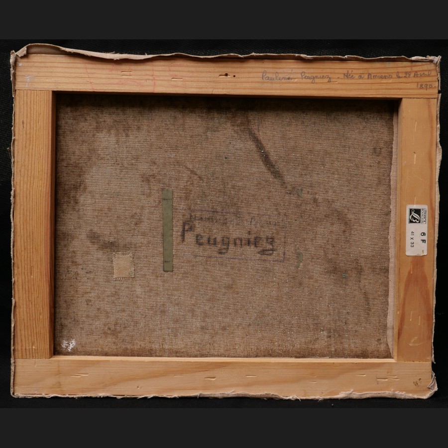 Pauline PEUGNIEZ (Amiens, 1890 – Paris, 1987)Scène familiale intimisteHuile sur toileSigné au revers Peugniez33 x 41 cmCadre en bois doré