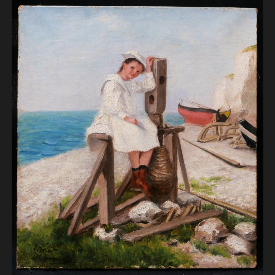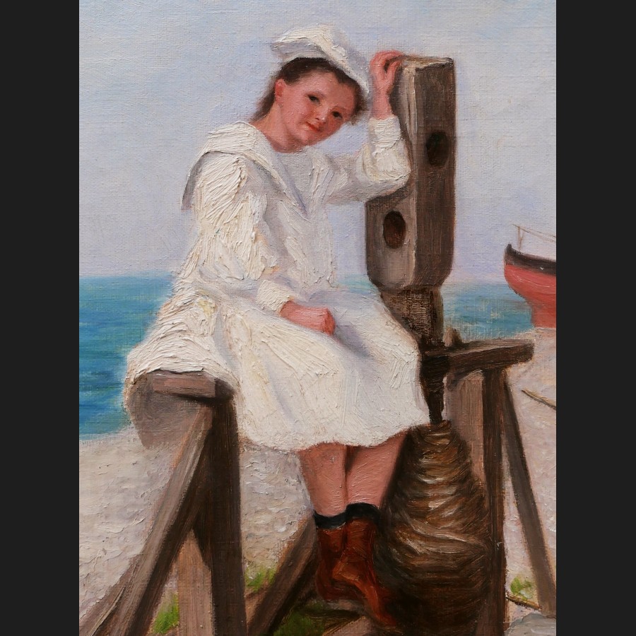 C. HENRIOL, Fillette sur un cabestan à Étretat, tableau