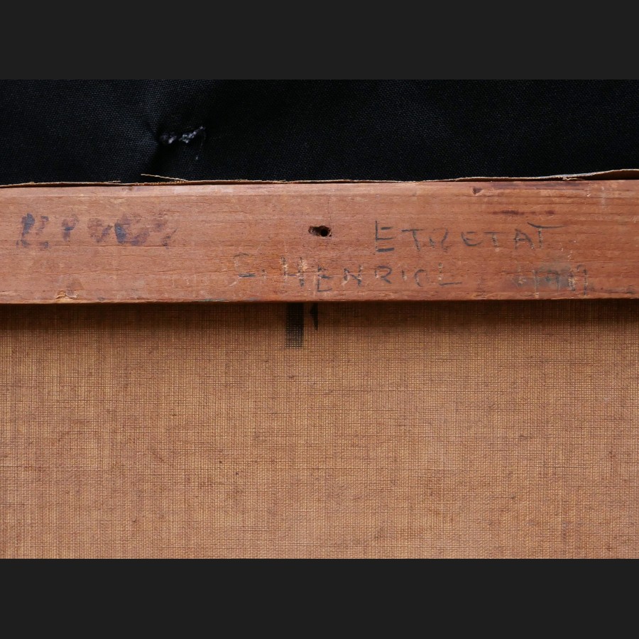 Situé et signé en bas à gauche Étretat / C. Henriol, situé, contresigné et daté sur le châssis ETRETAT / C. HENRIOL 1919