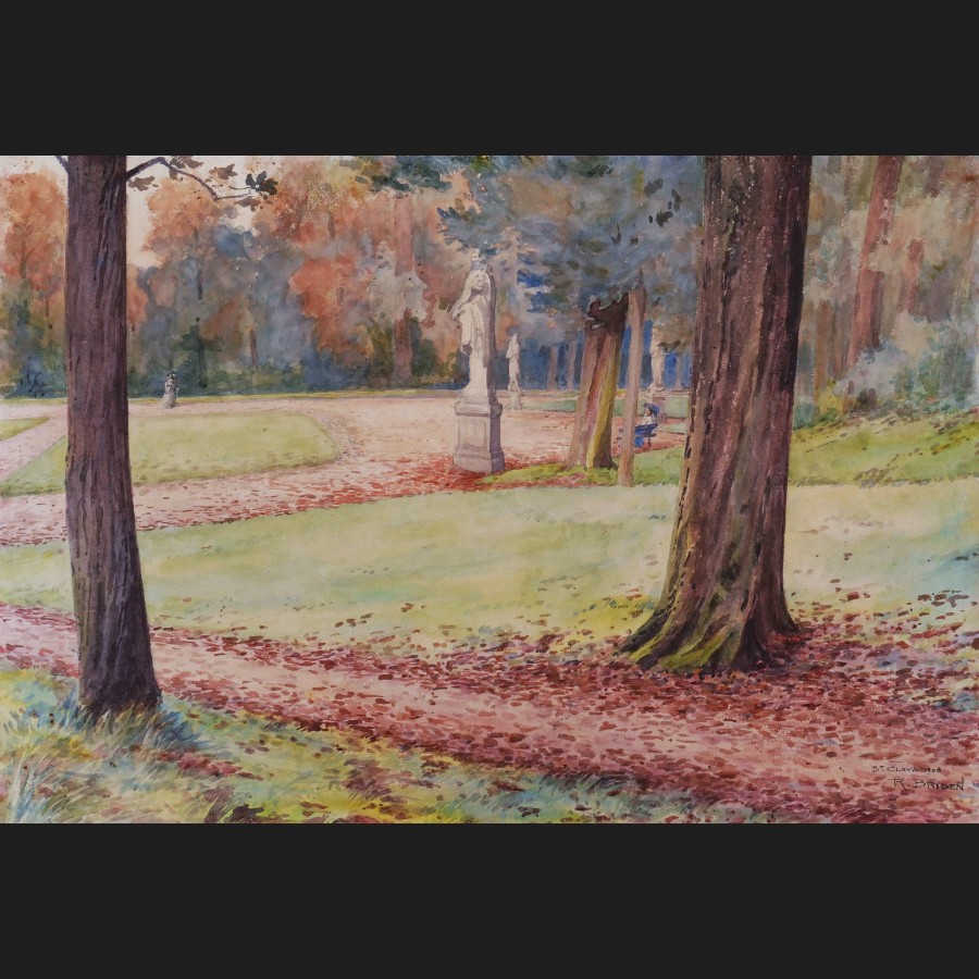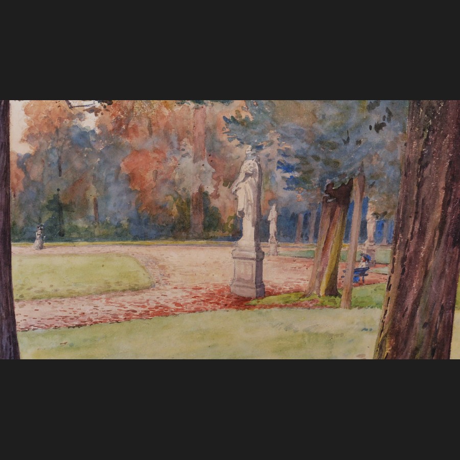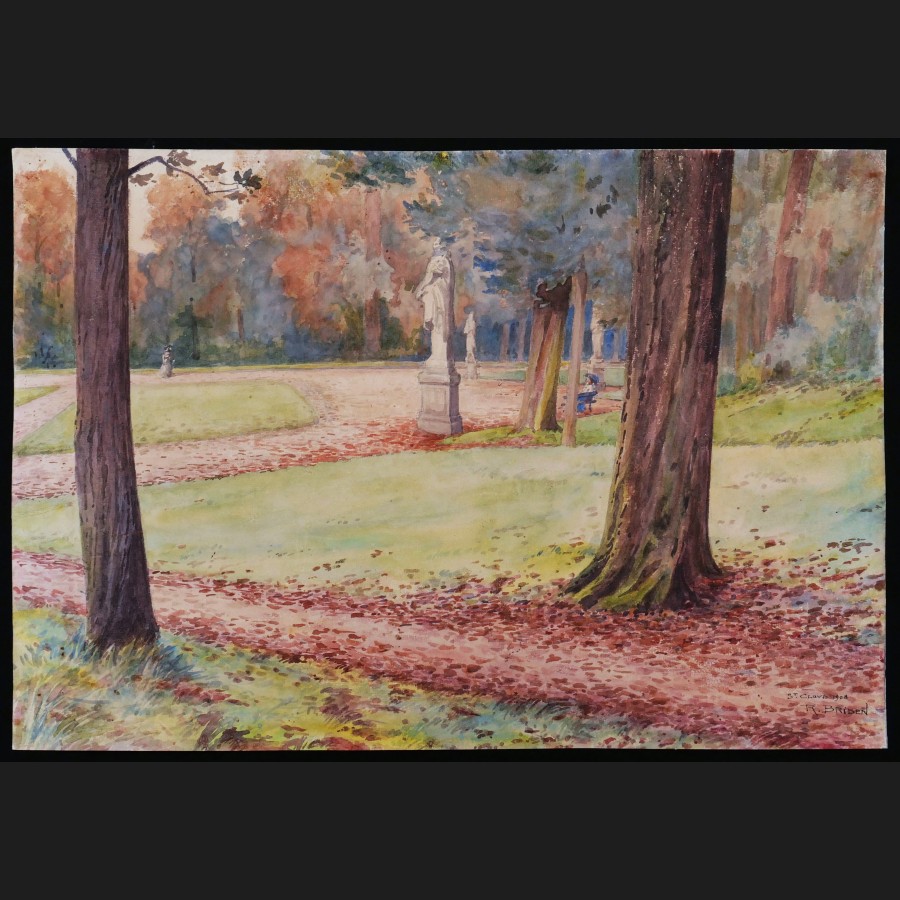 René BRIDEN, Vue animée du Parc de Saint-Cloud, aquarelle