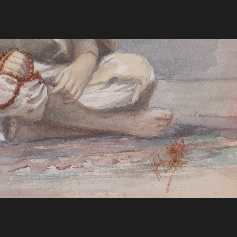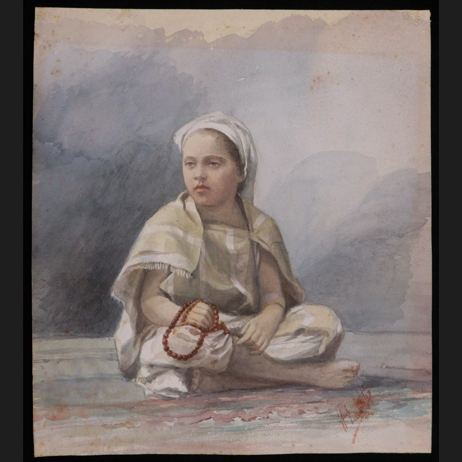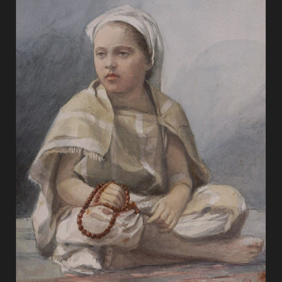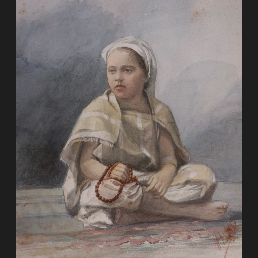 École FRANÇAISE du début du XXème siècle, Jeune fille algérienne assise, aquarelle