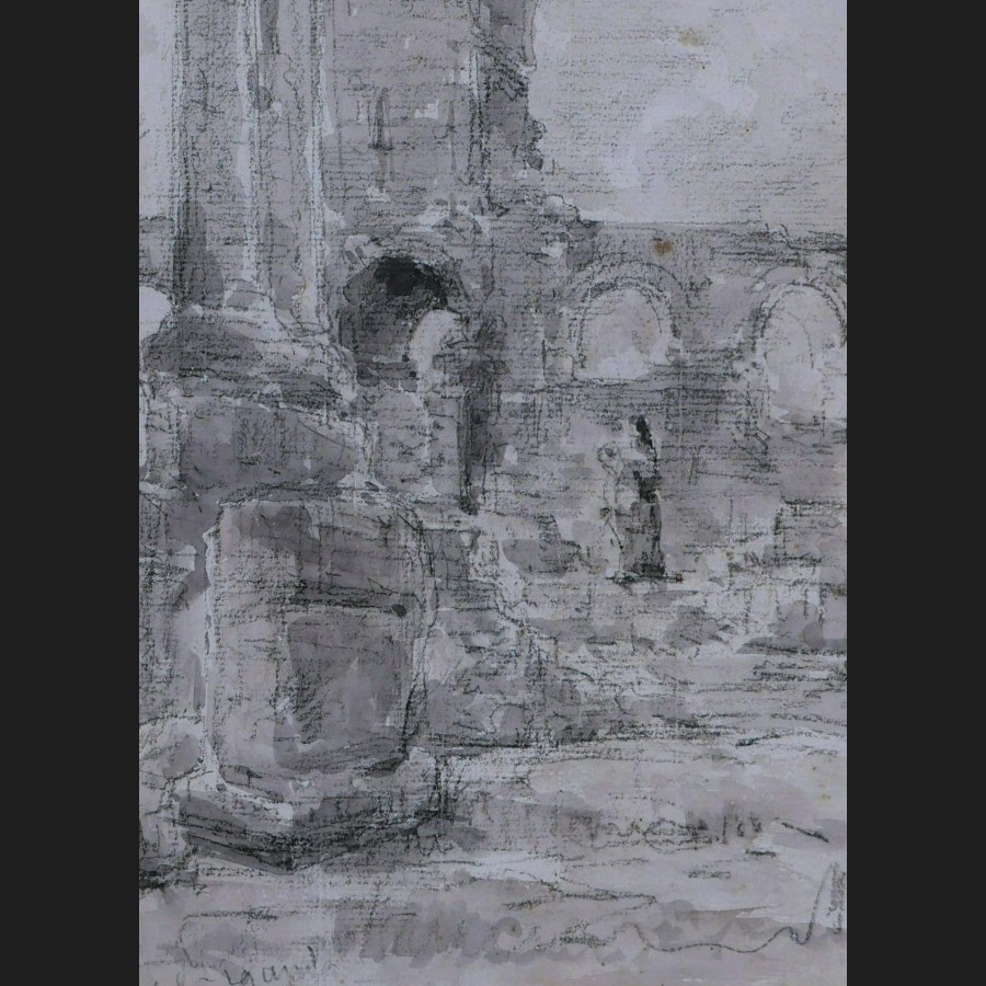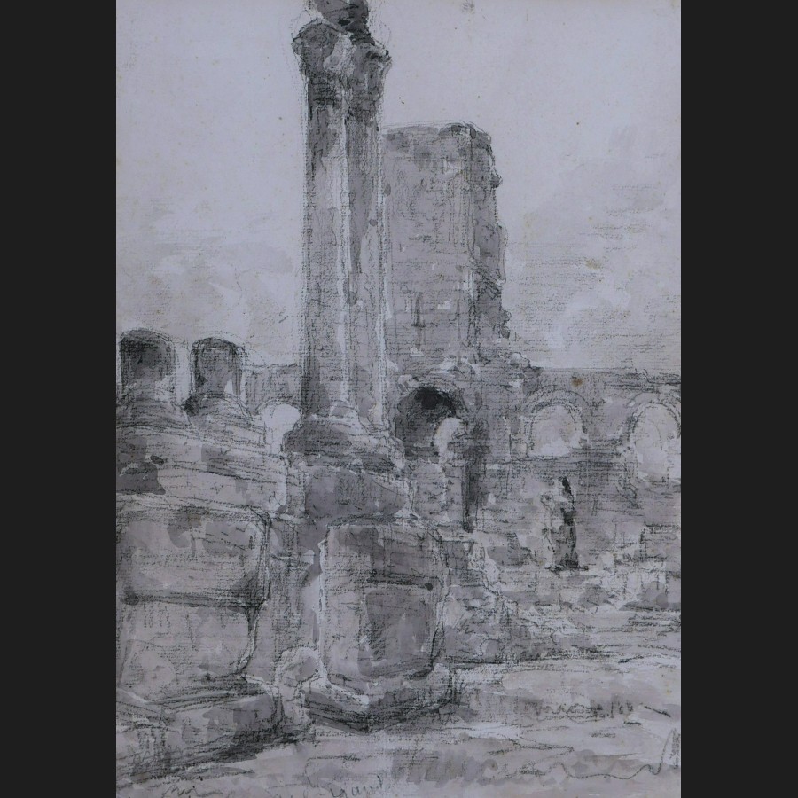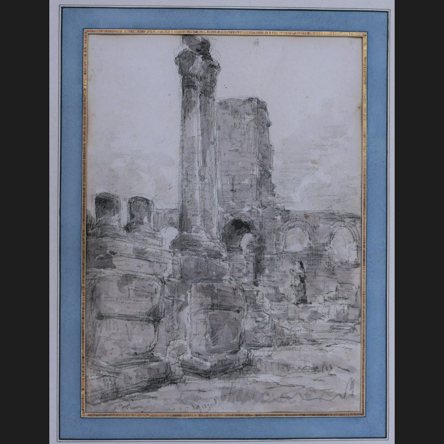 École FRANÇAISE fin XVIIIème – début XIXème siècle, Les ruines du Théâtre antique d'Arles, dessin
