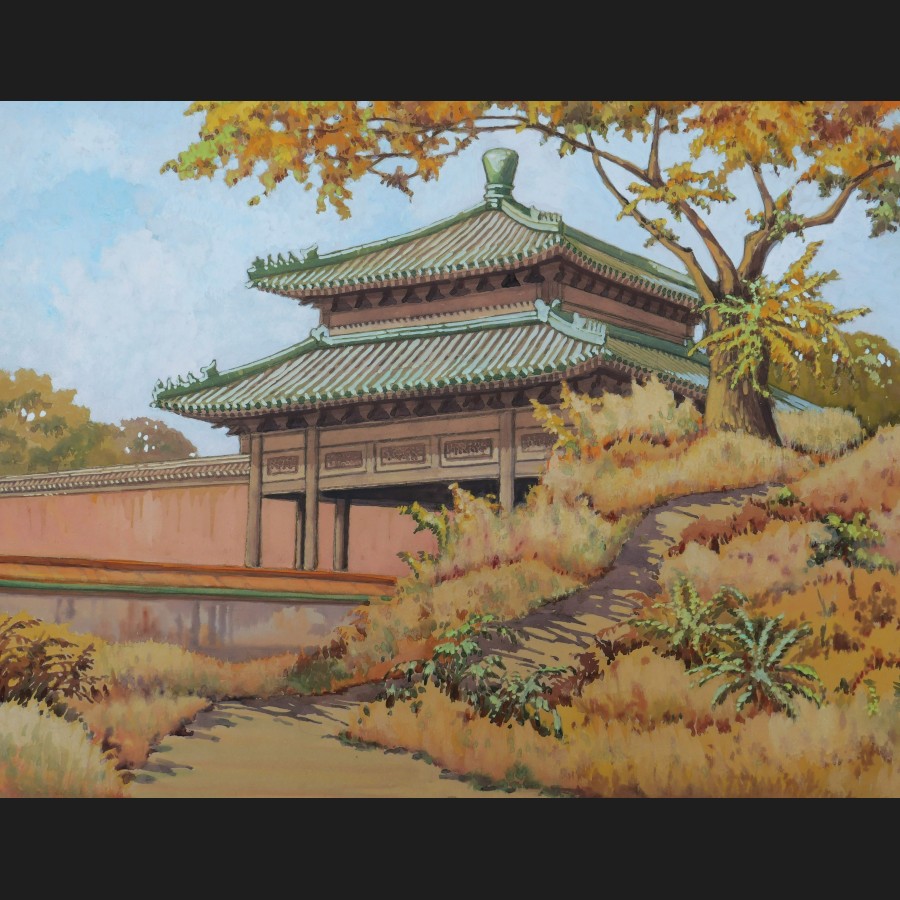 École FRANÇAISE ou CHINOISE circa 1930-1940, Neuf vues de temple ou de palais en Chine, gouaches