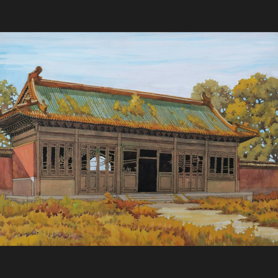 École FRANÇAISE ou CHINOISE circa 1930-1940, Neuf vues de temple ou de palais en Chine, gouaches