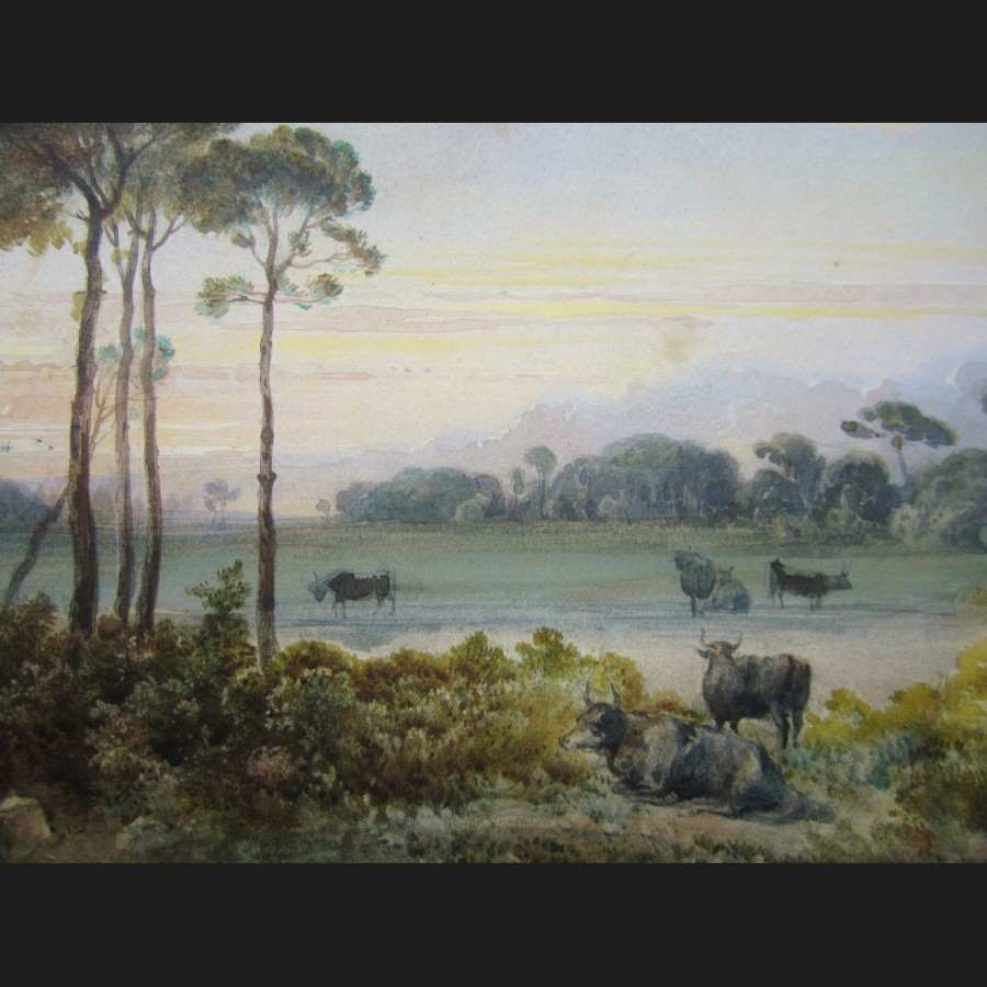 École ANGLAISE du XIXème sièclePaysage italien aux bufflesAquarelle25,2 x 35 cm