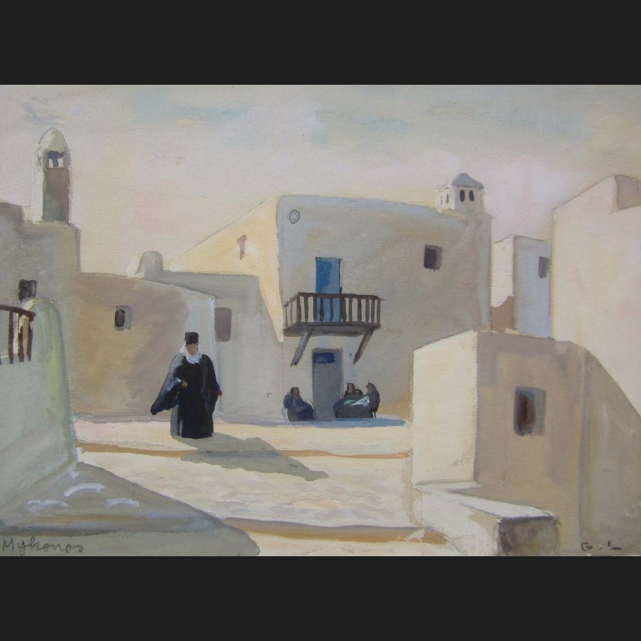 Monogrammé en bas à droite G.L., situé en bas à gauche Mykonos