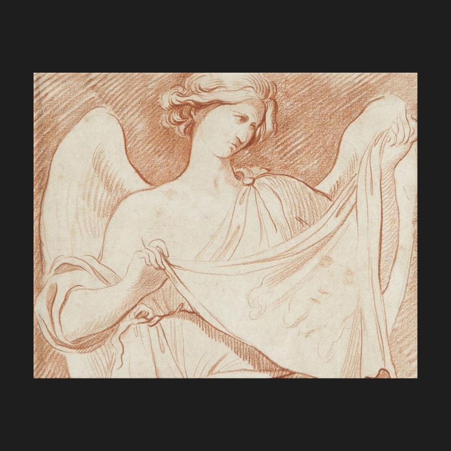 Attribue à Edme BOUCHARDON, Ange tenant le Saint-Suaire, dessin