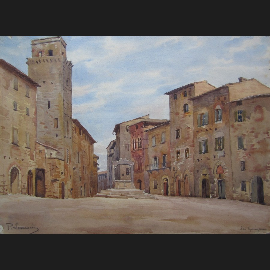 Signé en bas à gauche P. Lemoine, situé en bas à droite et au dos San Gimignano