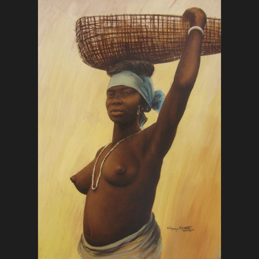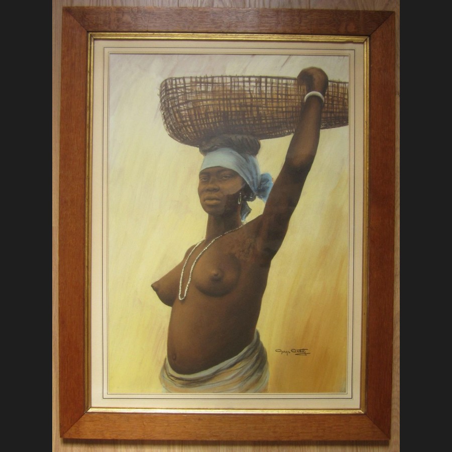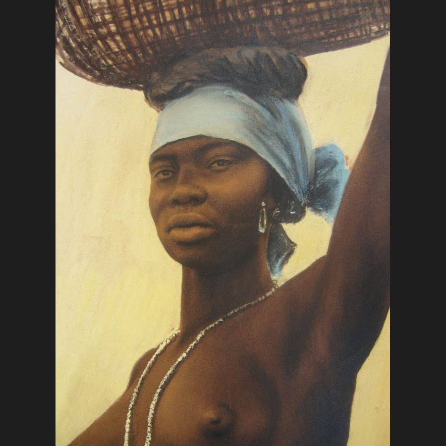 Georges CRETELLE (actif circa 1930)Portrait d'Africaine au panierAquarelle et gouacheSigné en bas à droite George Cretelle67 x 48 cm