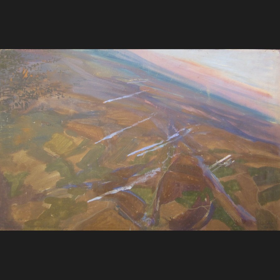 Michel PELLETAN, Biplan survolant les champs vers Quimper, tableau
