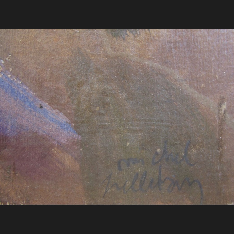 Situé, daté et titré en bas à gauche Quimper 1939 / Les brulots dans les champs à la tombée du jour, signé en bas à droite michel pelletan