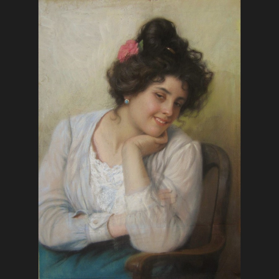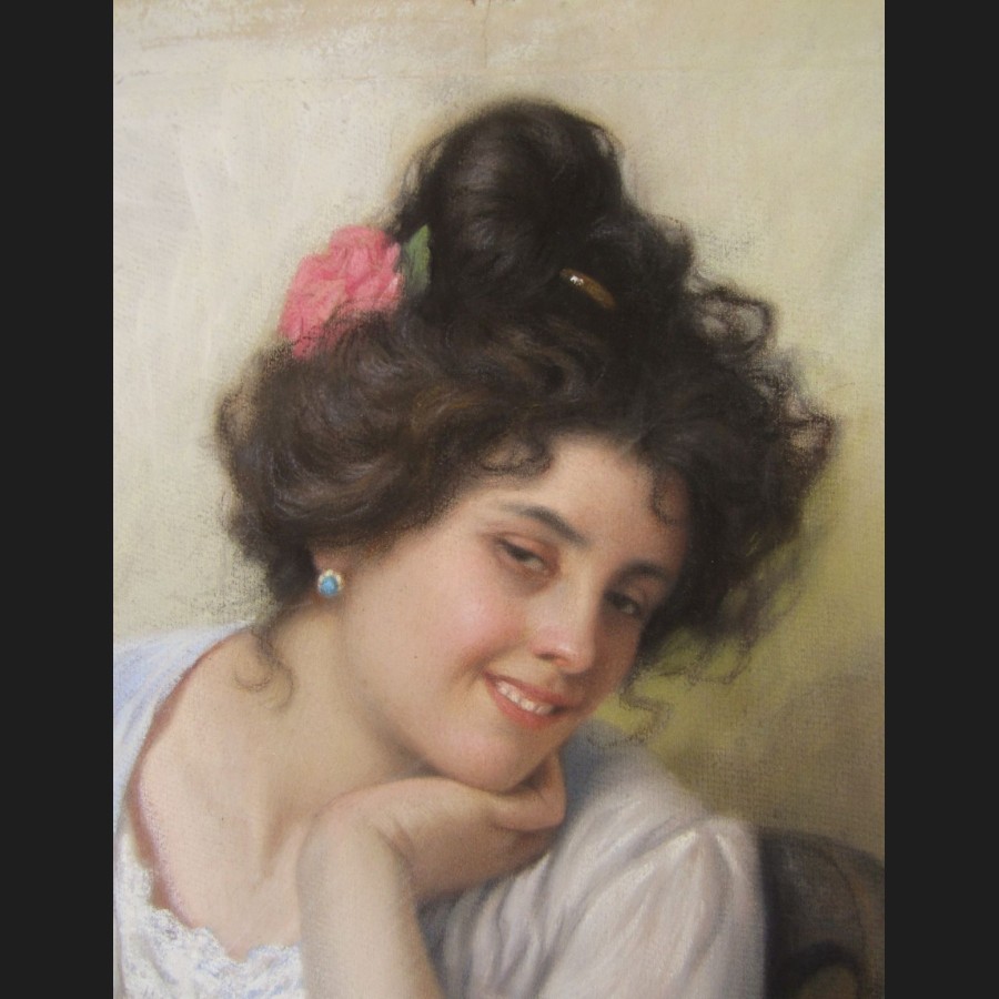 Giovanni CALDANA, Jeune Vénitienne souriante, pastel