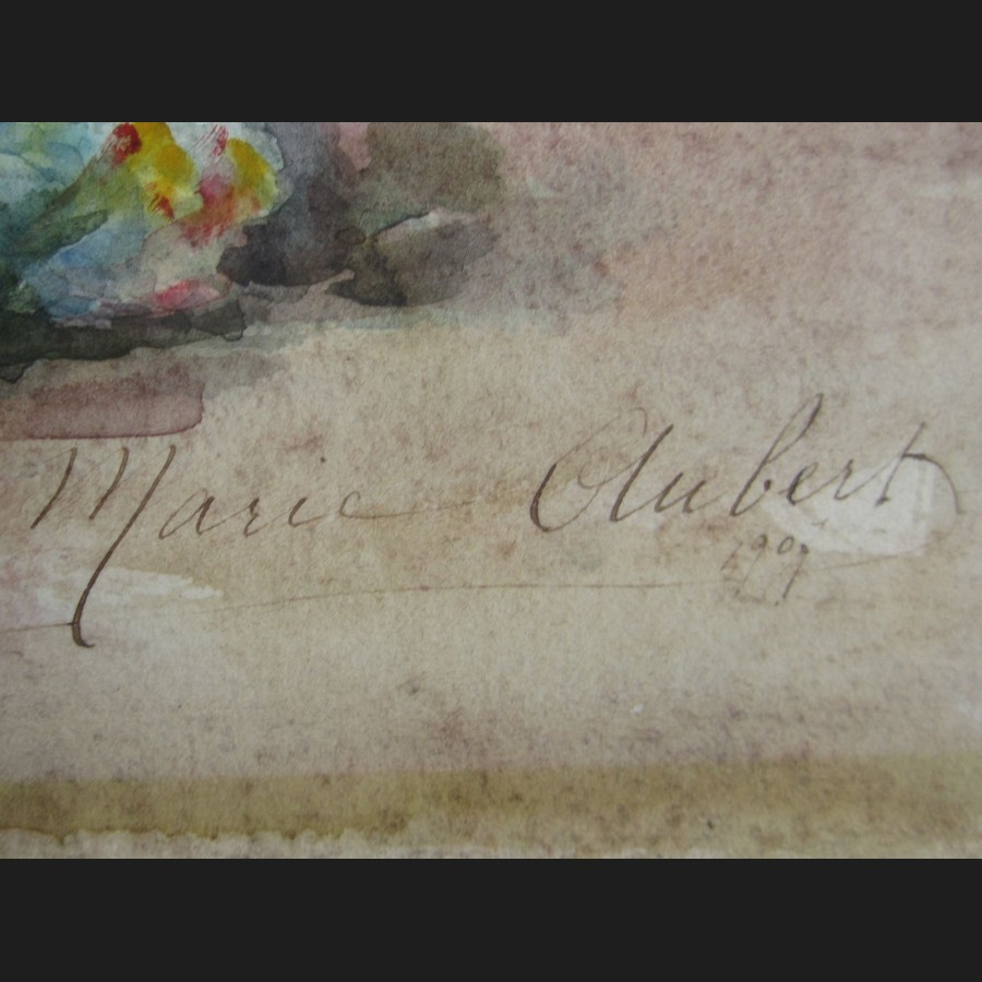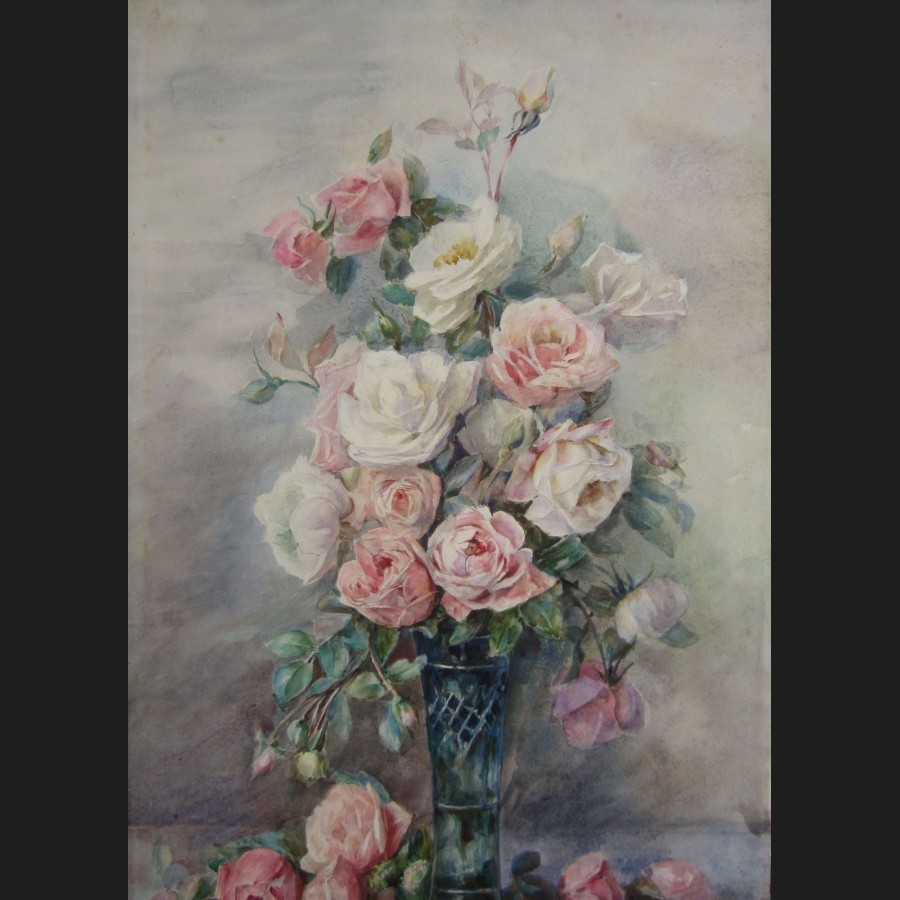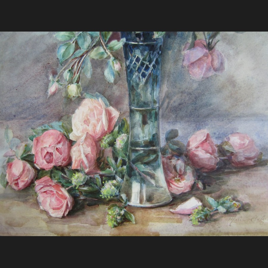Marie Gabriel HUBERT (Paris, 1861 - ?)Vase de rosesAquarelle sur papierSigné et daté en bas à droite Marie G Hubert 190775 x 45 cm