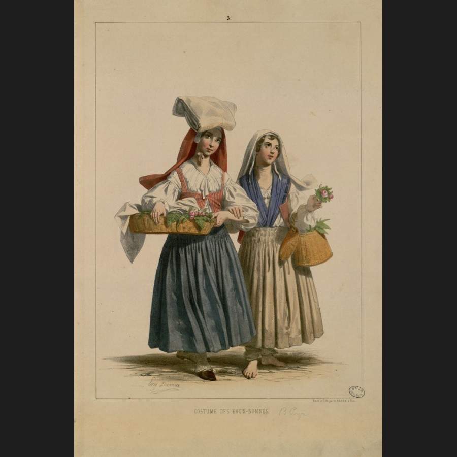 Paysanne de la vallée d'Ossau tenant une corbeille de fleurs