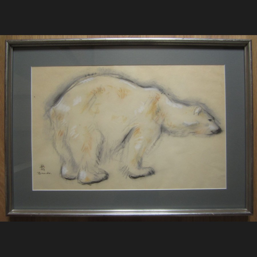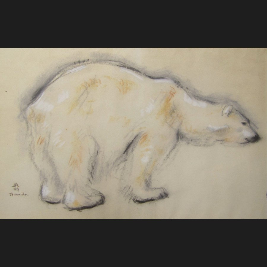 Toshio BANDÔ (Tokushima, 1895 – Paris, 1973)Ours polaireFusain, pastel et craie blanche sur papierSigné en bas à gauche30 x 47 cm