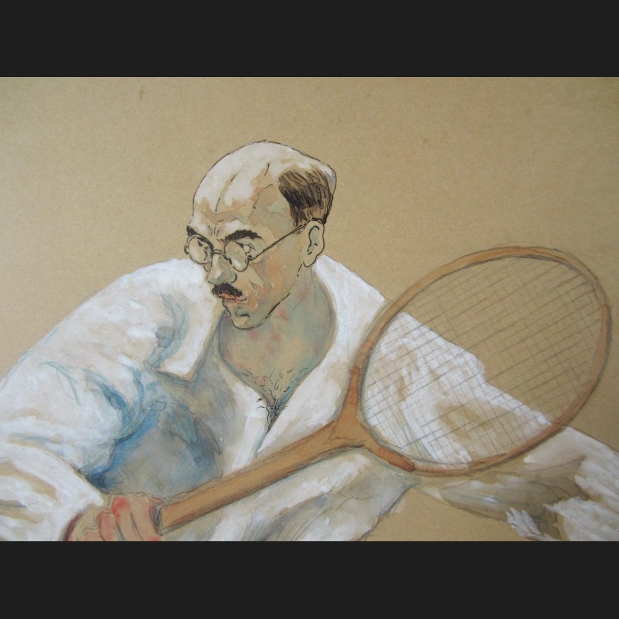 École FRANÇAISE circa 1930, Homme jouant au tennis, dessin