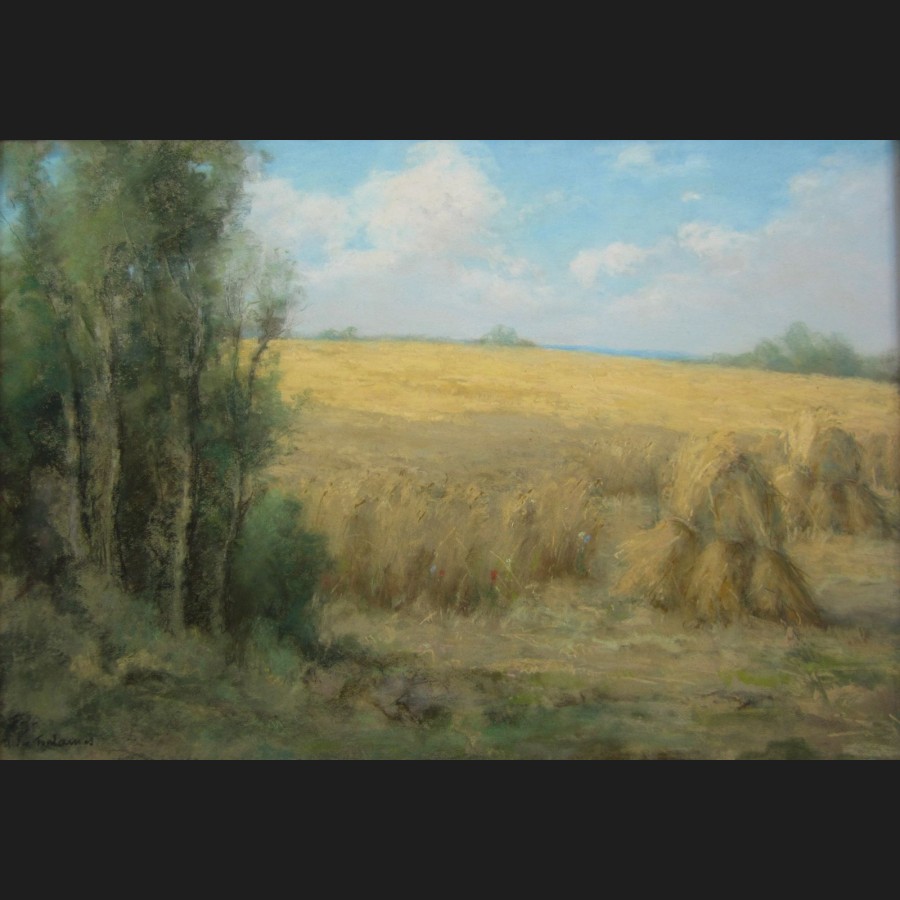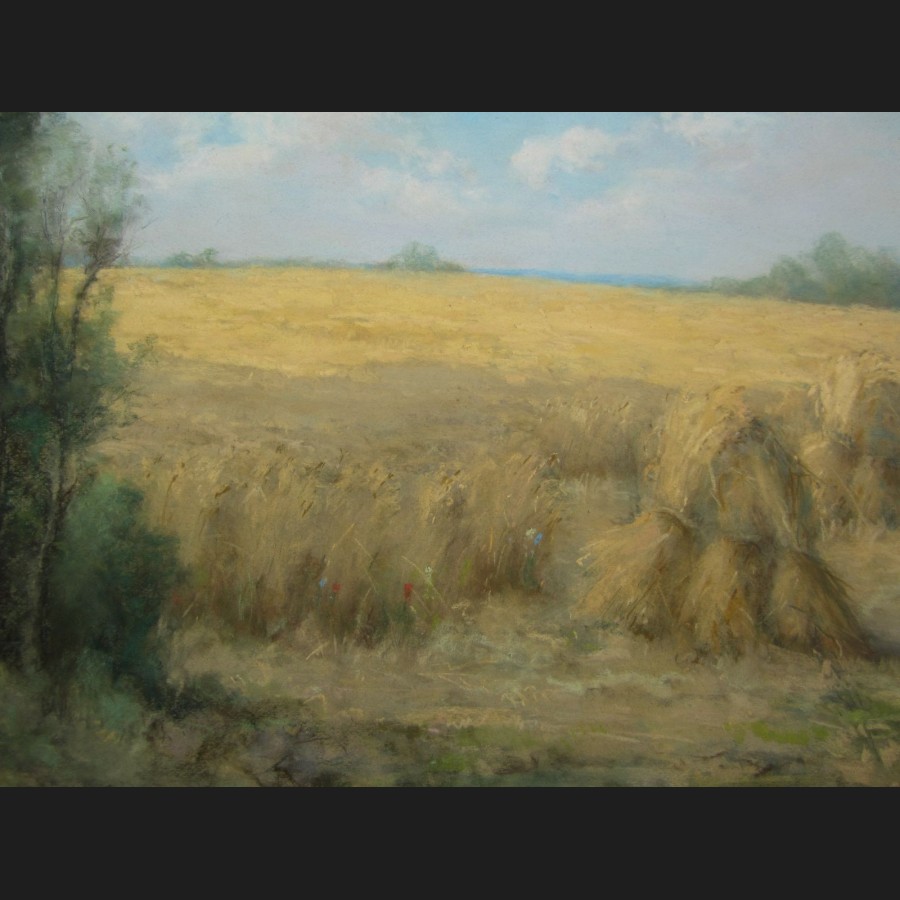 André des FONTAINES (1869-1910)Champs de blé en étéPastel sur papierSigné en bas à gauche A. des Fontaines54 x 78 cm