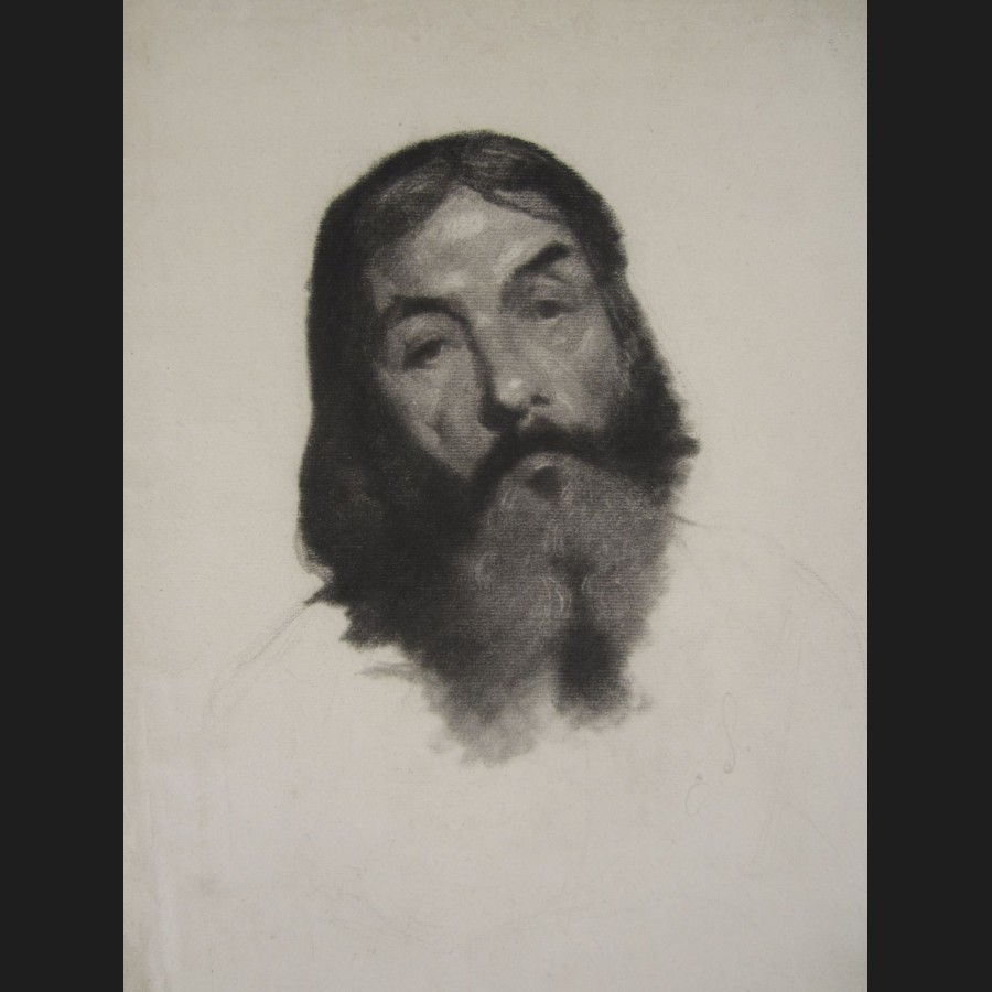 Eugène SIEFFERT (actif de 1868 à 1882)Portrait d'homme barbuFusain sur papier 48 x 32 cm