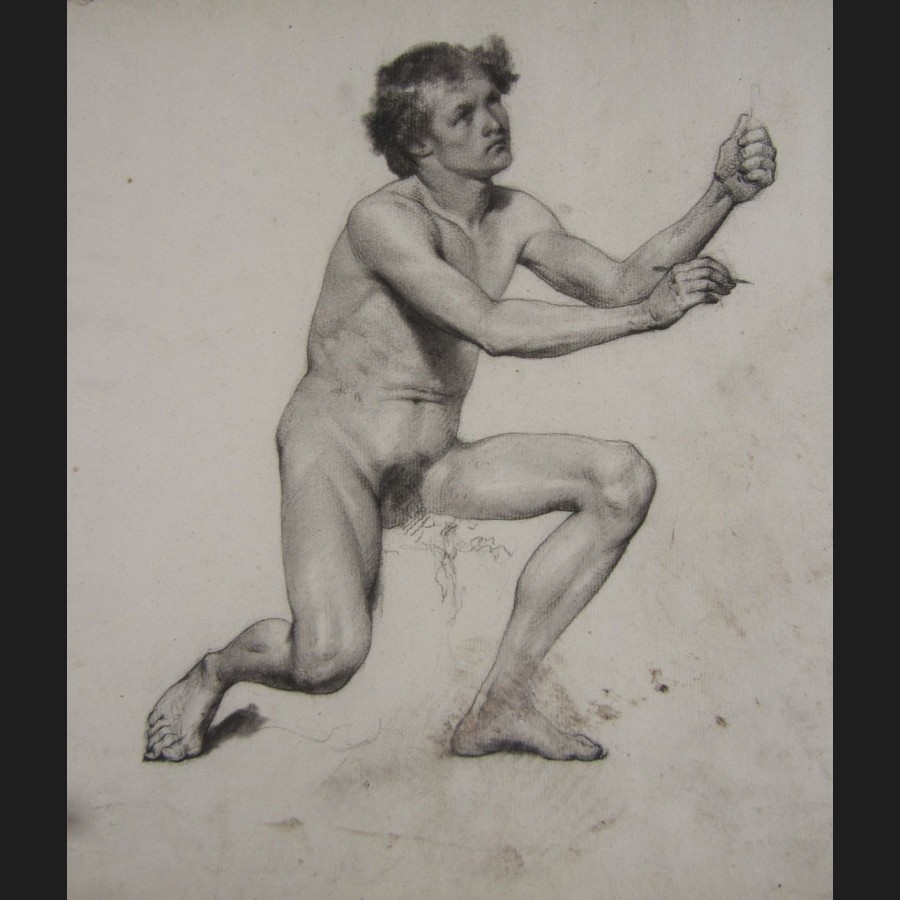 Eugène SIEFFERT, Académie de dessinateur nu assis, dessin