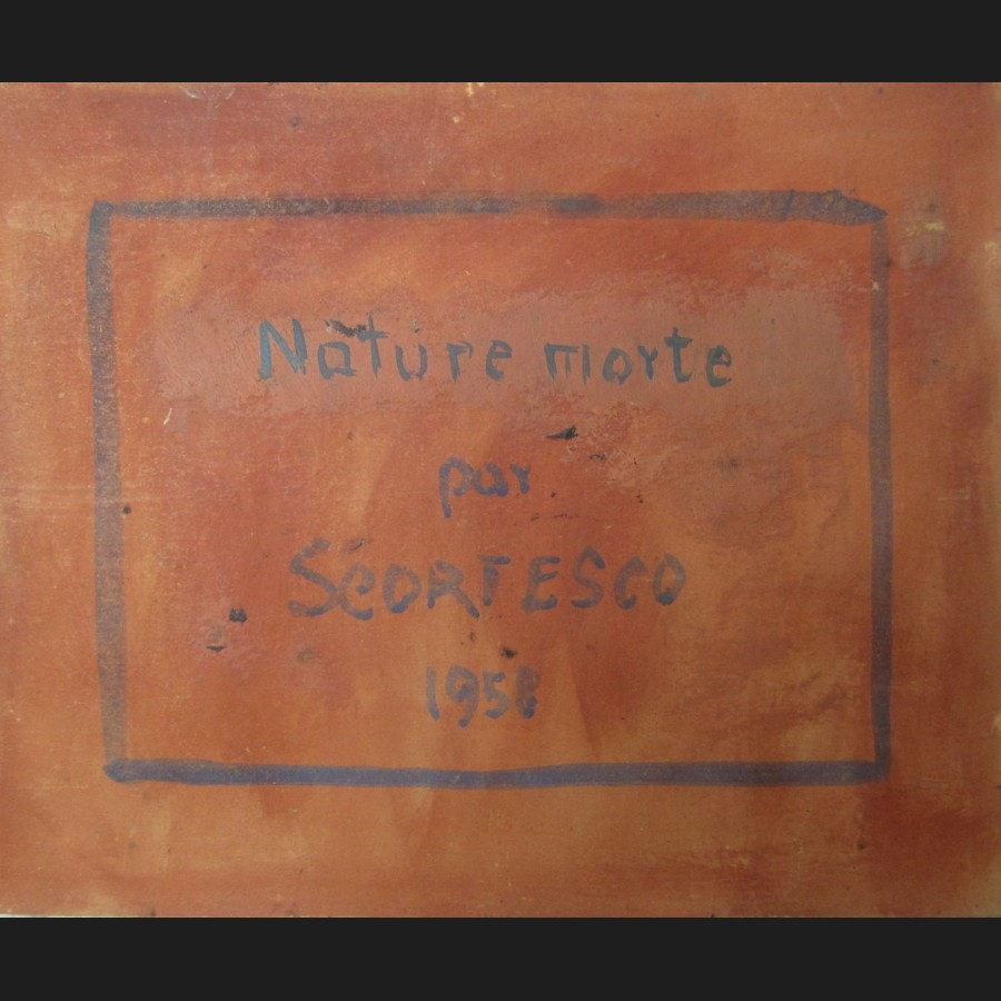 Signé en bas à gauche Scortesco, titré at daté au dos Nature morte par Scortesco 1958