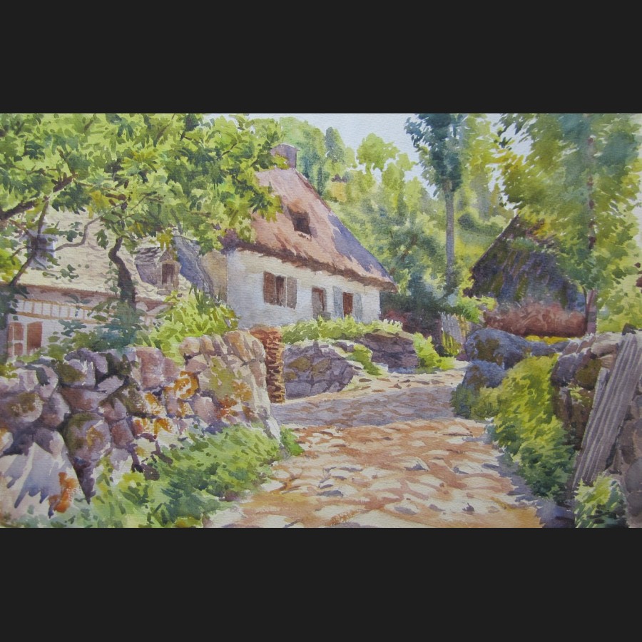 Paul LEMOINE, Chaumières à Mandailles dans le Cantal , aquarelle n°34