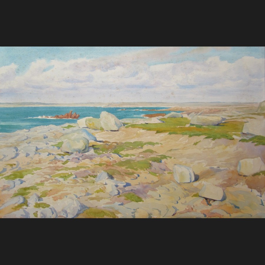 Paul LEMOINE, Côte rocheuse par temps clair, Bretagne, aquarelle n°28