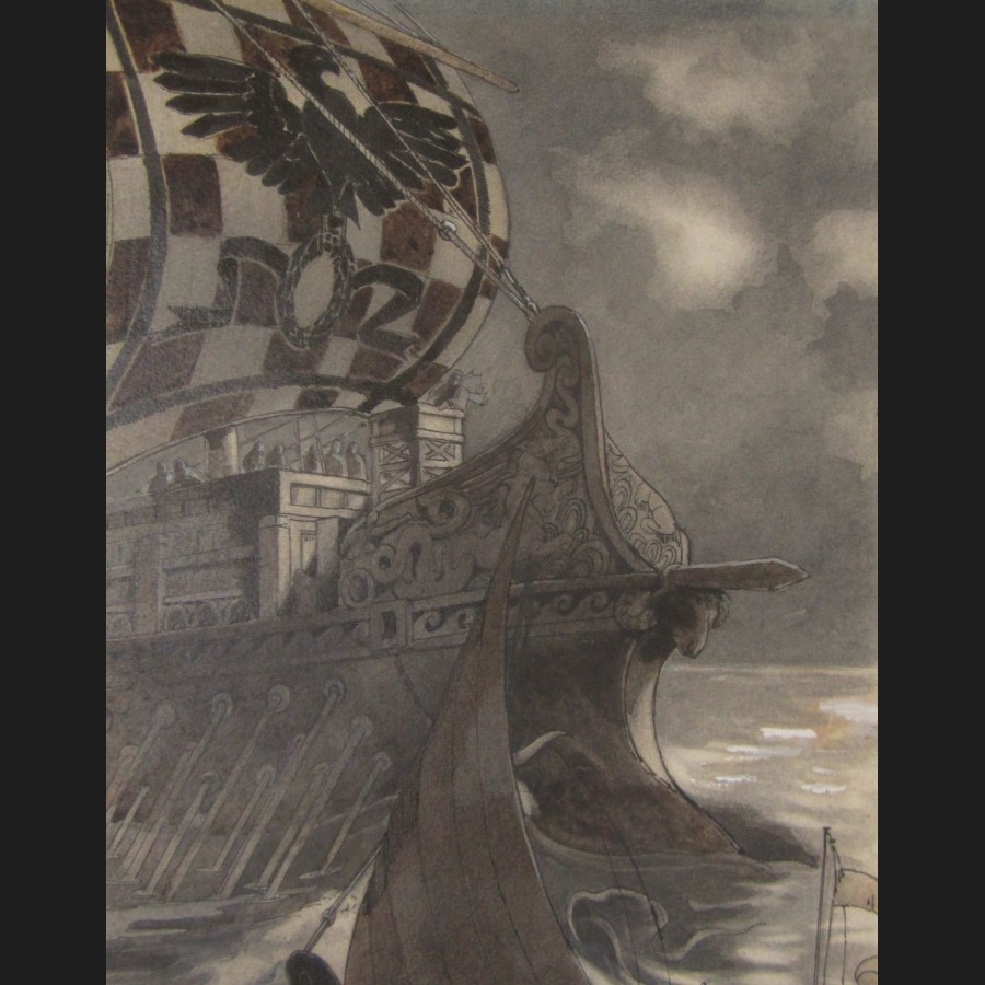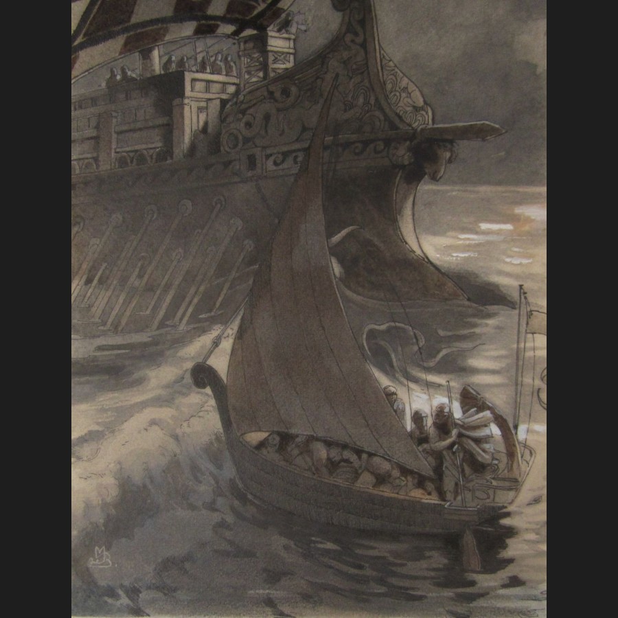 Maurice JAUBERT de BECQUE, Scène maritime dans l'Antiquité, aquarelle