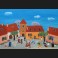 Gérard LAPLAU, Place de village animée dans le Quercy, gouache