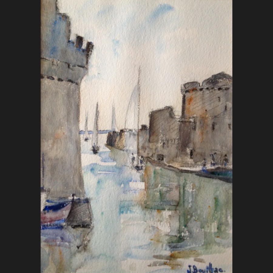 Jacques BOUILHAC, L'entrée du Port de la Rochelle, aquarelle
