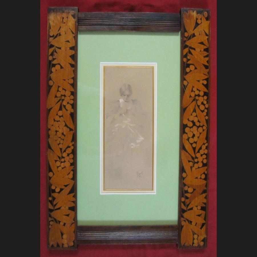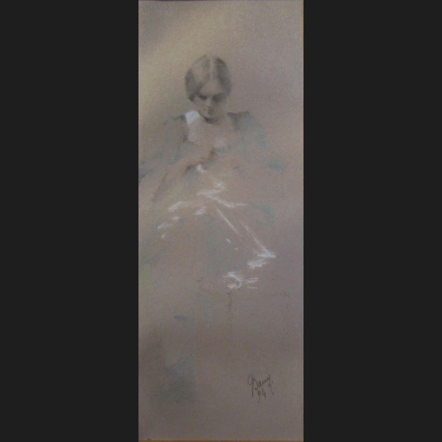 Gaston BOUY (1866-1943)Femme cousantCrayon, aquarelle et rehauts de pastel sur papierSigné et daté en bas à droite G Bouy 9426,5 x 10,5 cm