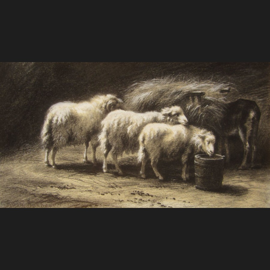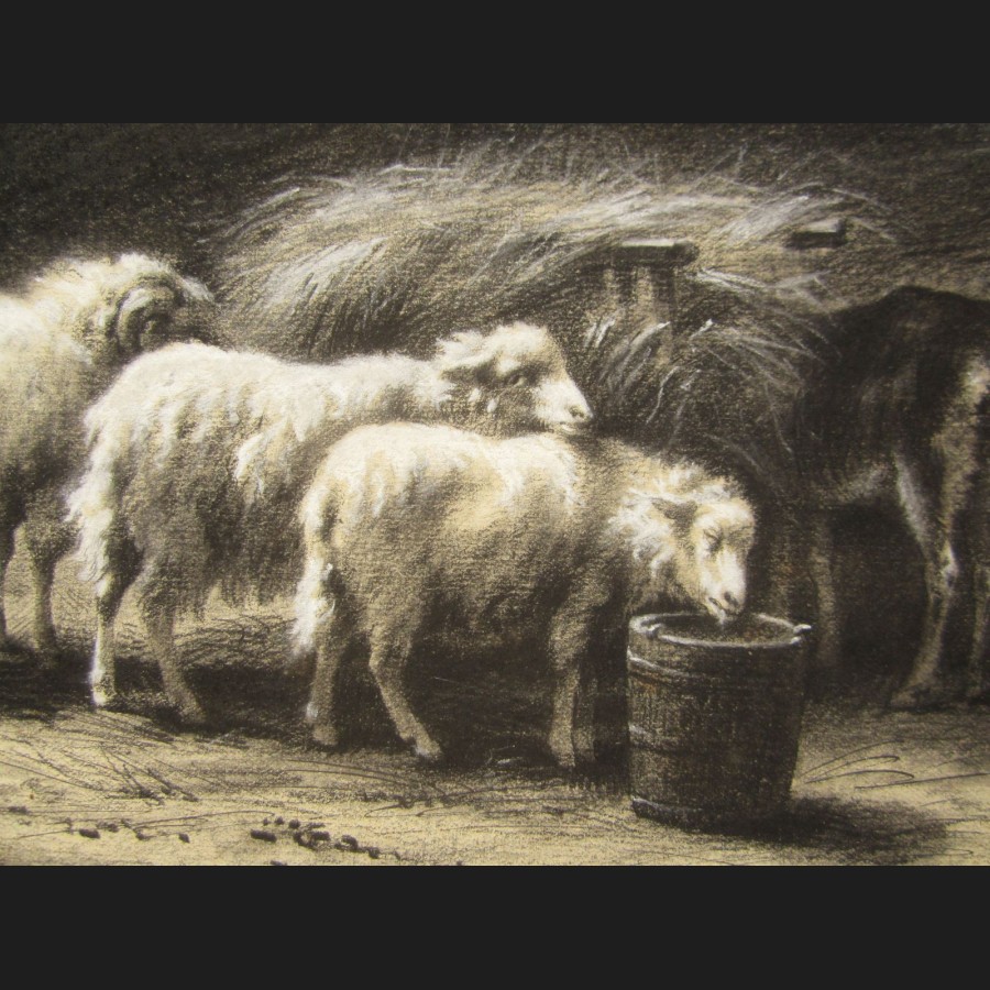 Rosa BONHEUR, Moutons dans la bergerie, dessin