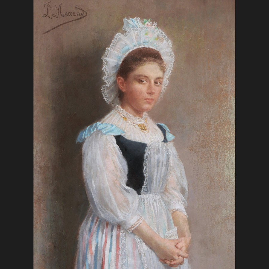 Louise MACCAUD, Jeune fille en costume traditionnel du Nord de la France, pastel