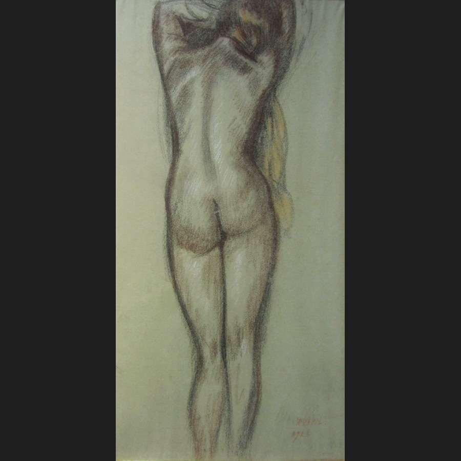 École FRANÇAISE circa 1920, Nu féminin de dos, dessin