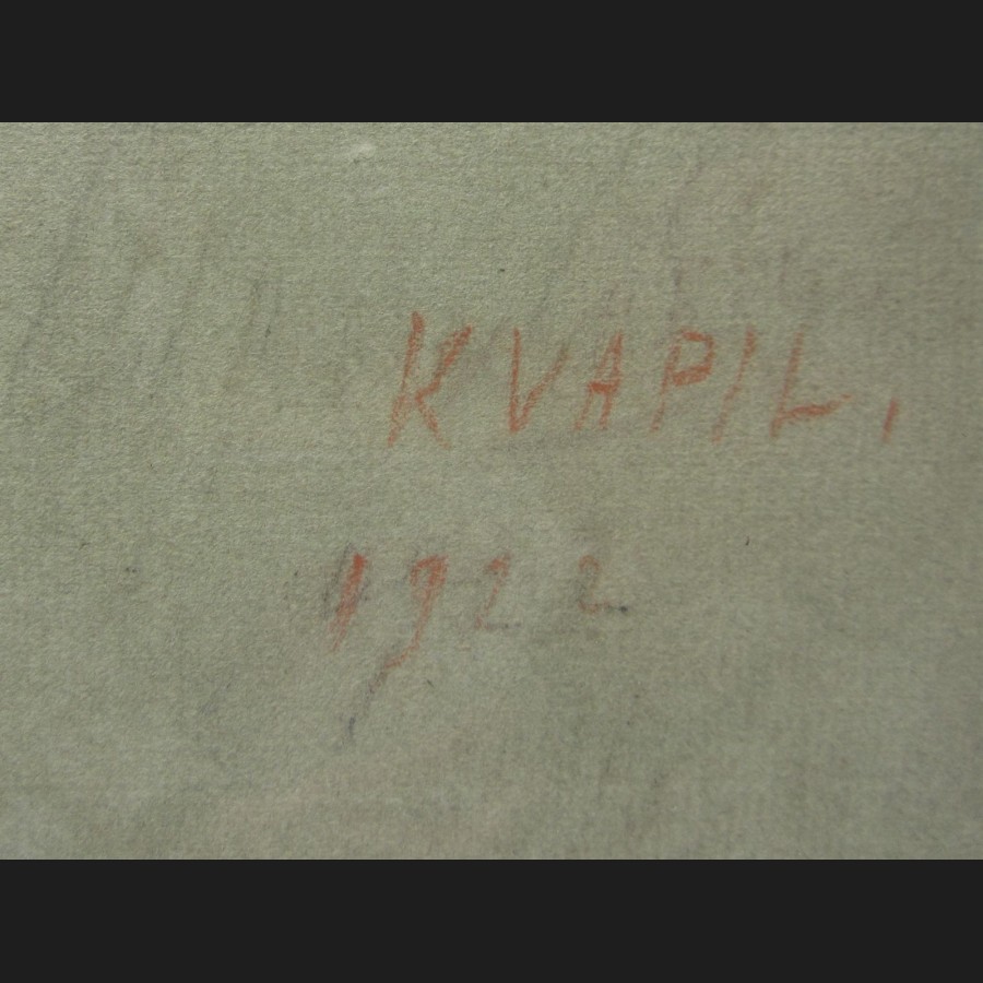 Porte une signature et une date KVAPIL 1922 en bas à droite (signature et date originales effacées en-dessous, encore légèrement visibles)