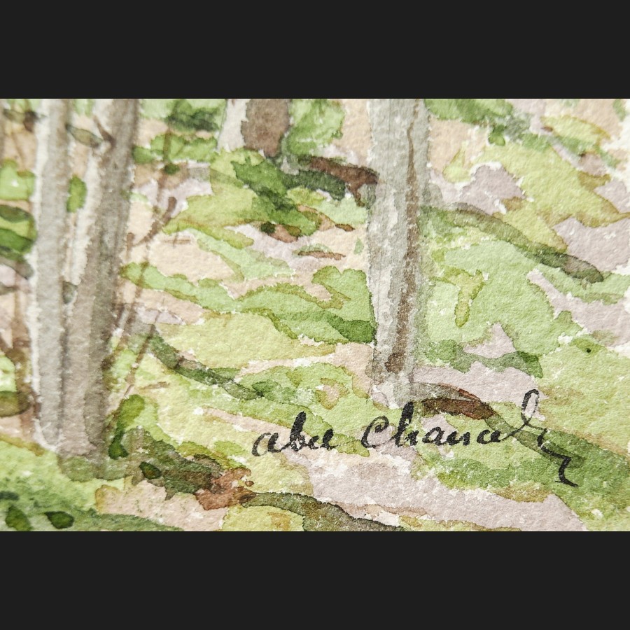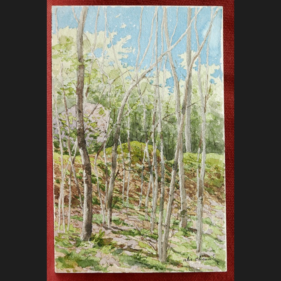 Abel CHANCEL, Paysage aux bouleaux à Janville, aquarelle