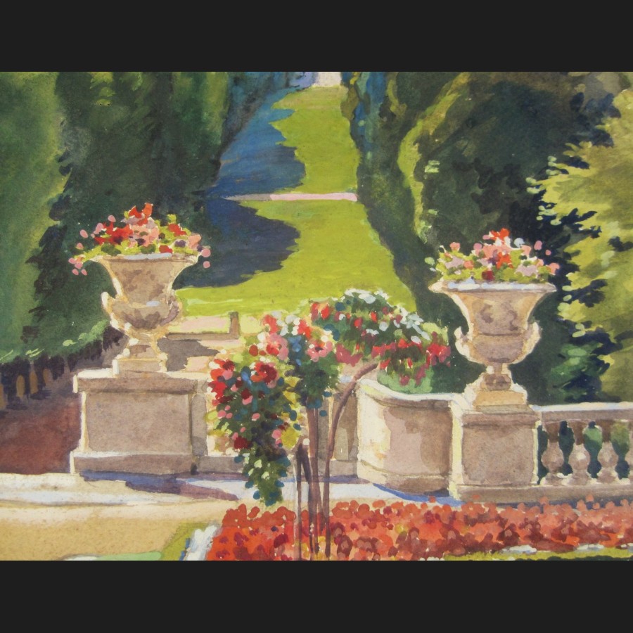 F. MONGE, Vue du Parc de Saint-Cloud, aquarelle
