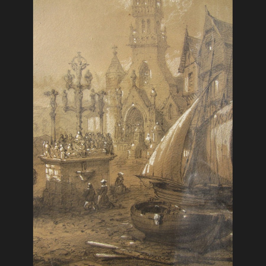 Signé en bas à droite Ch Pensée, inscrit sur le dolmen La Bretagne