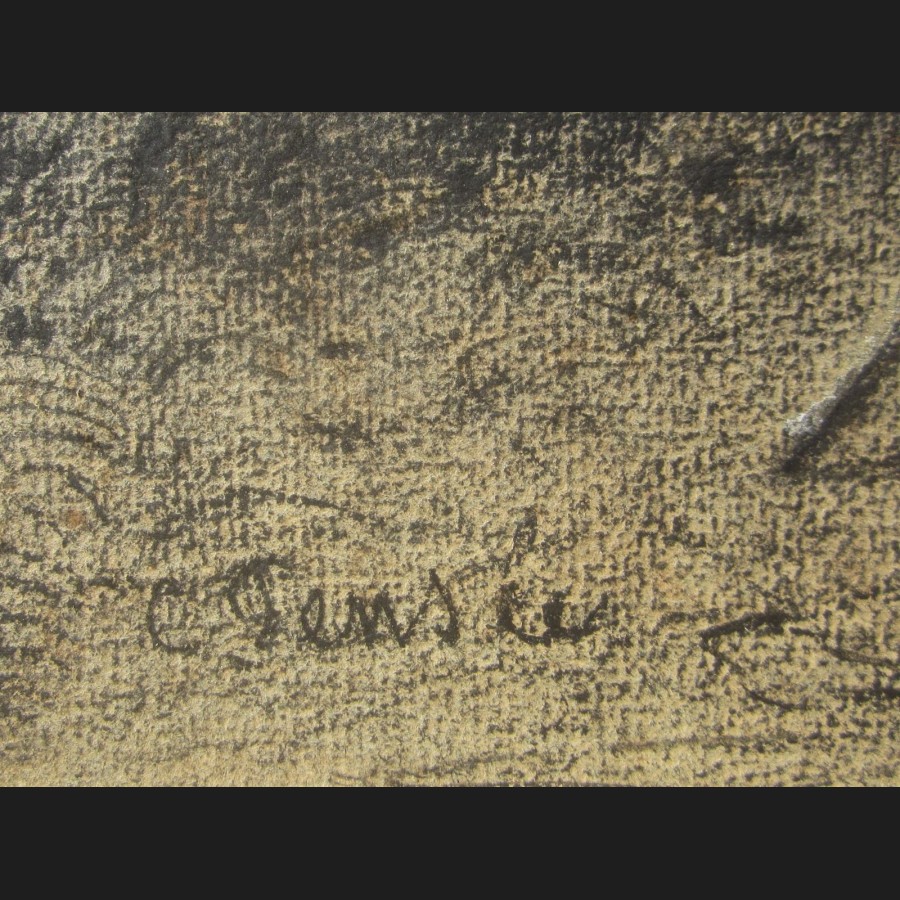Fusain et rehauts de craie blanche sur papier bistre