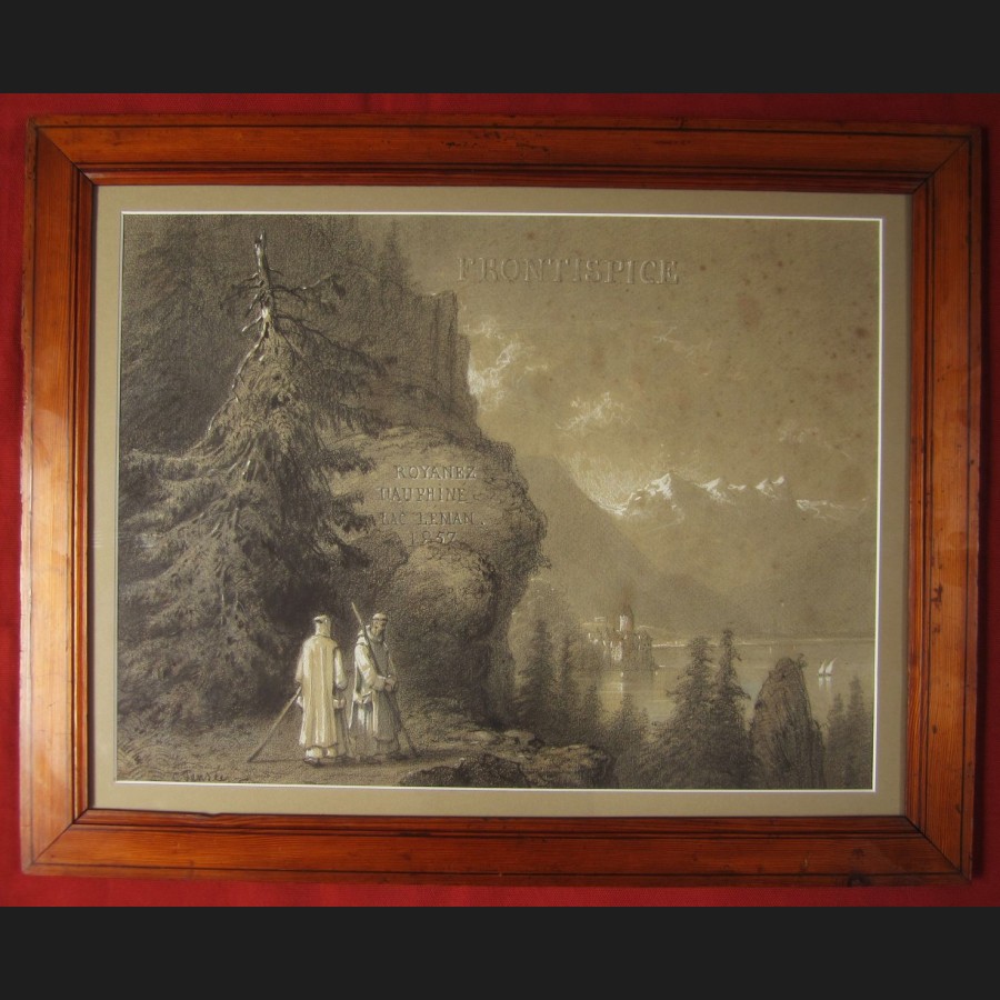Signé en bas à gauche C. Pensée, inscrit sur le rocher Royanez / Dauphiné / Lac Léman / 1857