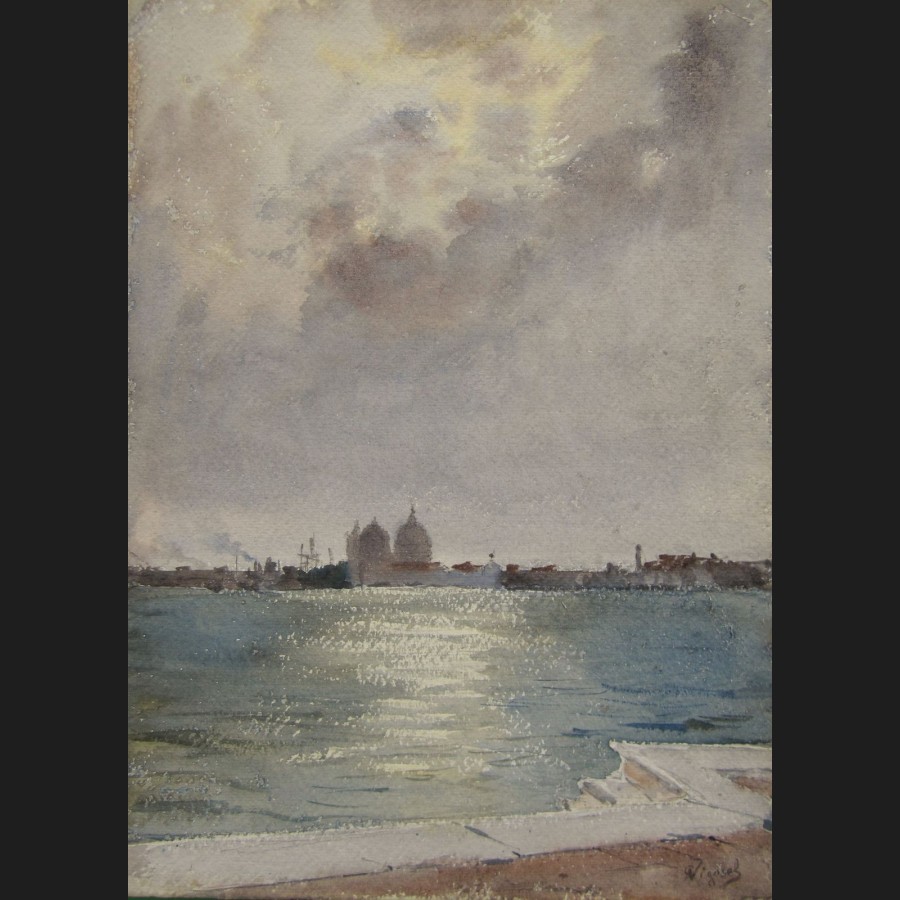 Pierre Victor Louis VIGNAL, La Salute et le Canal de la Giudecca à Venise, aquarelle