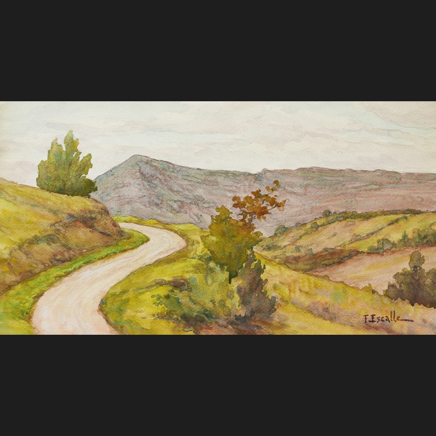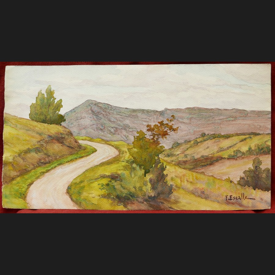 F. ESCALLE, Chemin à Penne dans le Tarn, aquarelle