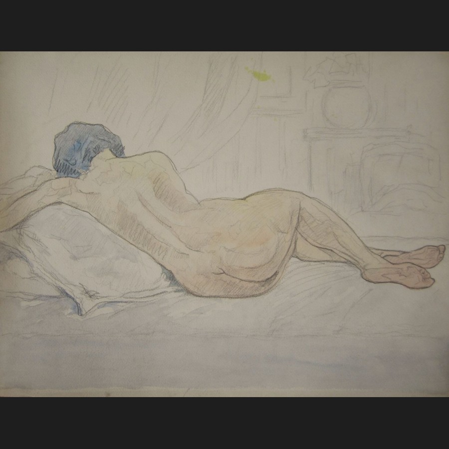 Marc ALLOUETEAU, Femme nue allongée de dos, dessin