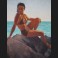 Marc ALLOUETEAU, Femme en maillot dans les rochers, aquarelle