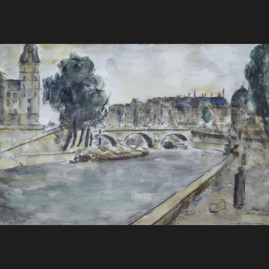 Daniel DOUROUZE, Le Pont Neuf à Paris, aquarelle