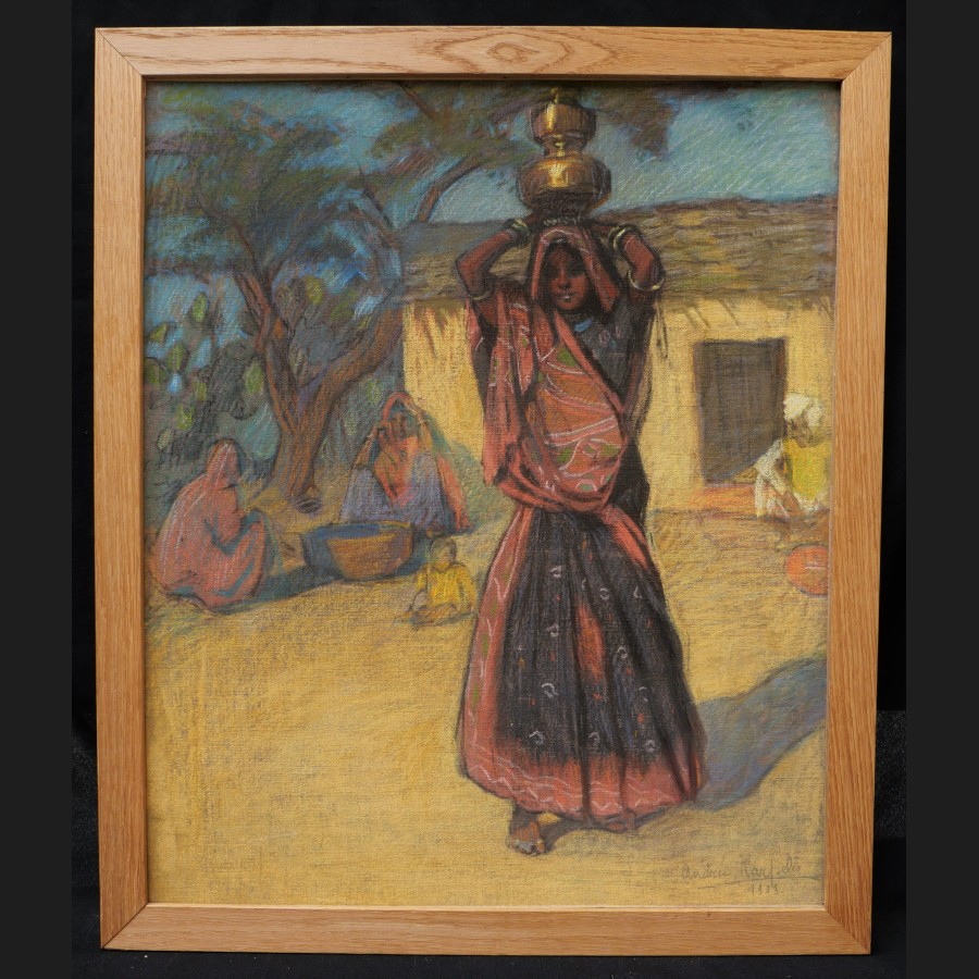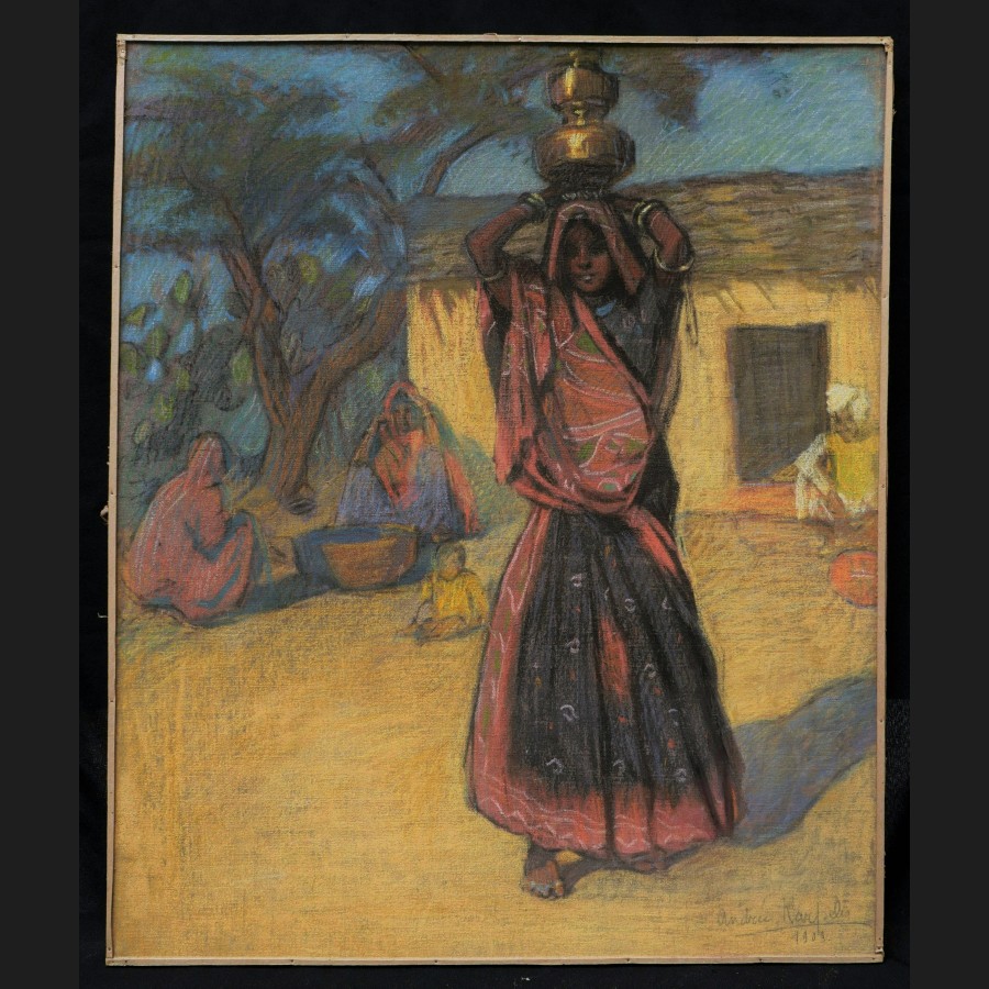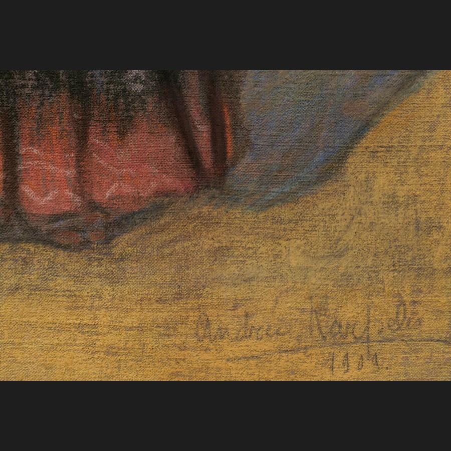 Andrée KARPÈLES (Paris, 1885 – Grasse, 1956)Femme indiennePastel sur toileSigné et daté en bas à droite Andrée Karpèles / 190955 x 46,5 cm
