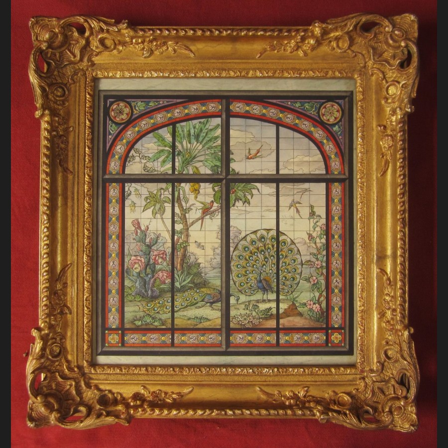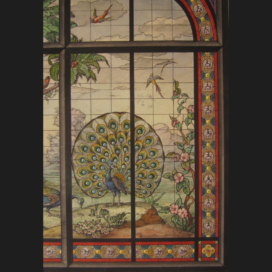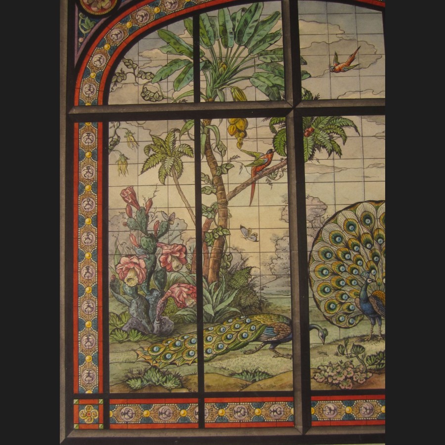 Ferdinand Corinthe DANDOIS, Projet de vitrail exotique aux paons, aquarelle