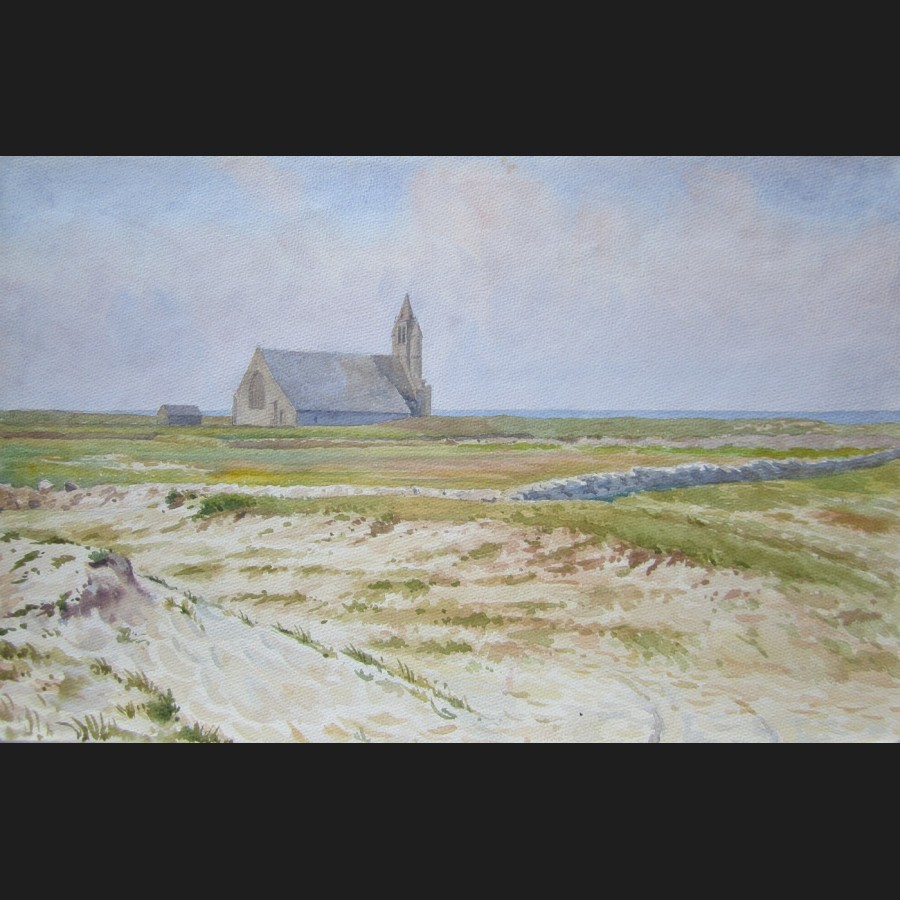 Paul LEMOINE, Notre-Dame de la Joie, Saint-Guenole, vue des terres, aquarelle n°2