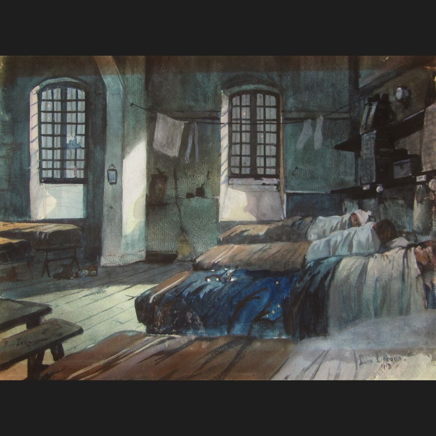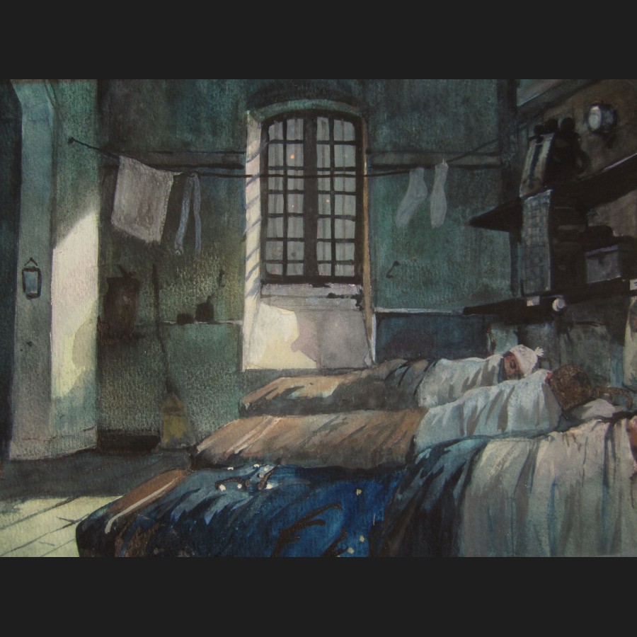 Pierre Albert LEROUX, Le dortoir au clair de lune, aquarelle