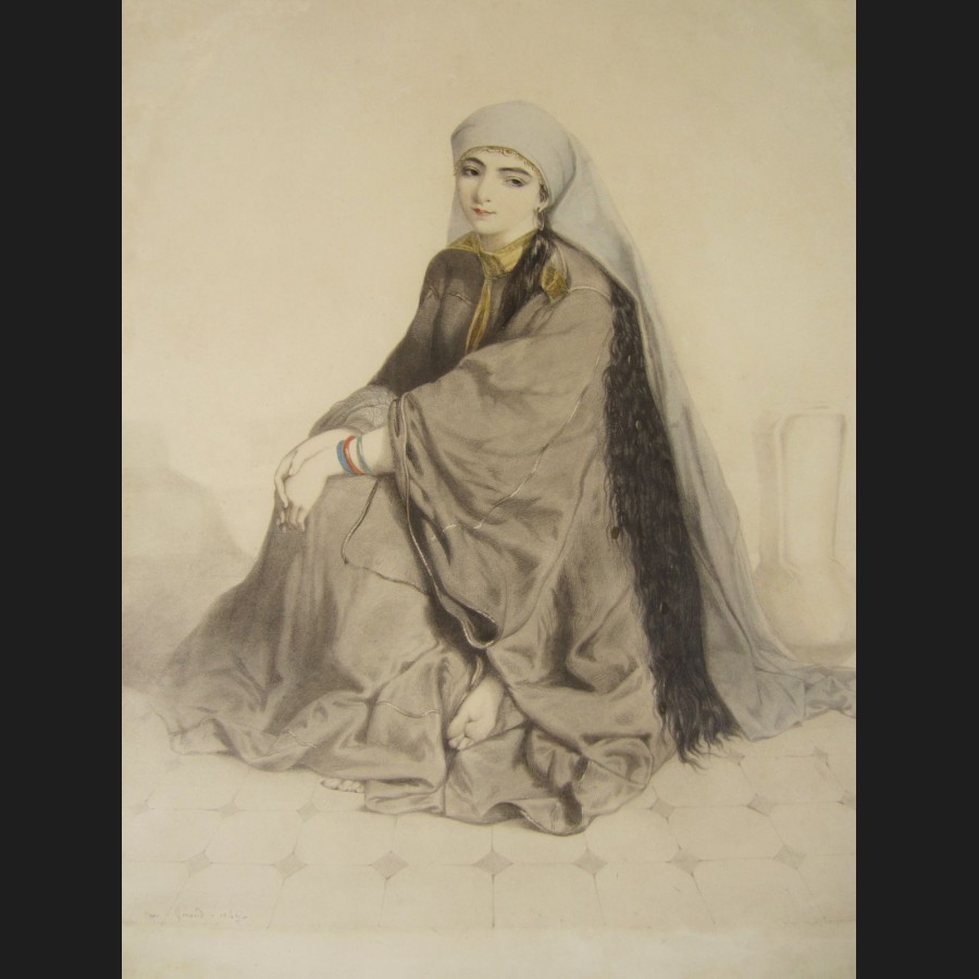 Pierre François Eugène GIRAUD, Jeune Ottomane assise, dessin