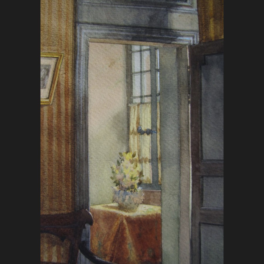 Raymond CRETOT-DUVAL, Intérieur de maison, aquarelle